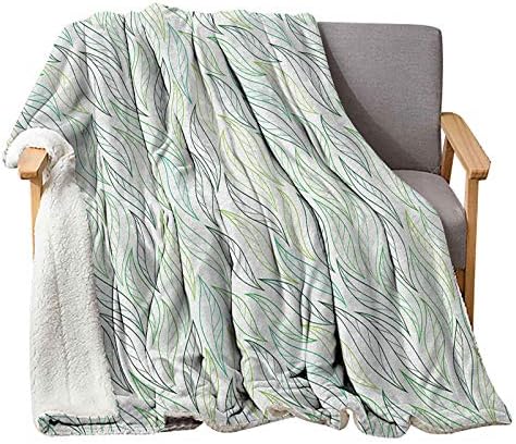 Leaf Weighted Blanket Kids 50 X 60 Floral Leaf Patterns With Ornamental Lines Contemporary Graphic Art Custom Blanket Green Soft Green Navy Blue Home Kitchen